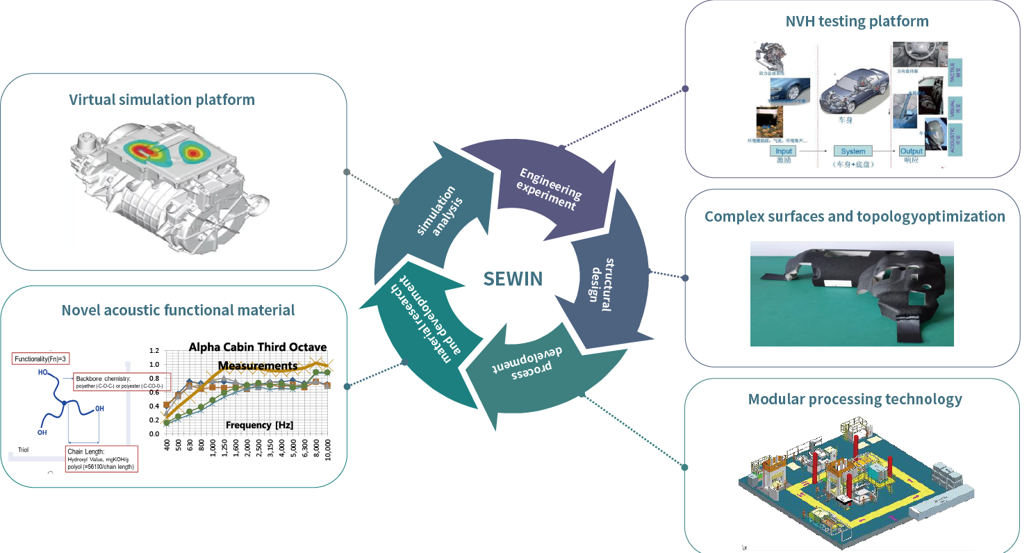 Relying on Changshun Group's strong research and development capability of vertically integrated innovative materials and the accumulation of nearly 30 years of NVH material development and application, Saisheng (Changshu) Acoustics Technology Co., Ltd. has developed and produced multi-functional and lightweight parts to optimize noise and thermal protection, enabling new energy automotive acoustics full value chain solutions. Innovative materials and product technologies make new energy vehicles safer, quieter and lighter which help reduce the energy consumption and efficiency of new energy vehicles, and carbon reach peak carbon neutralization.